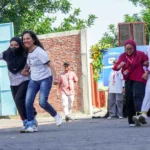 • Lomba Estafet Air Menggunakan Topi Kerucut di Wajah